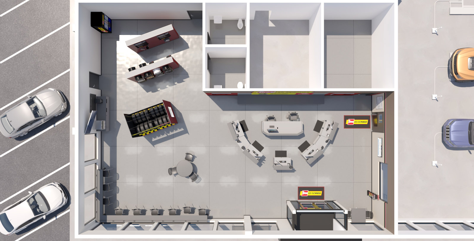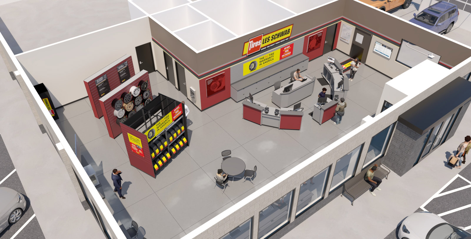 Redmond 6th Street, Oregon - Les Schwab Tire Center - Exterior 3D Render